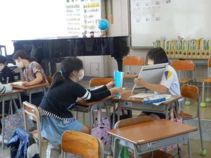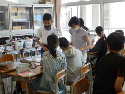 話し合ってまとまったことをホワイトボードに書いて発表をします。今は運動会の練習が多くて授業が進まないことも多いですが、できるときにしっかりと、集中して取り組む子供たちです。