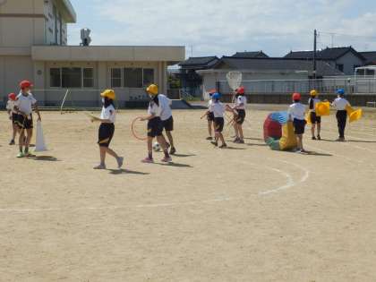 4・5・6年生の巧緻走練習の後です。特に、片付け担当は決まってないのですが、進んで片付ける5年生です。自分たちの使った物を片付ける、自分のできることをしっかりする、進んで行動する意識が素晴らしいです。