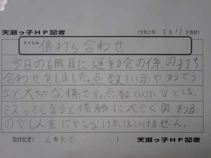 毎日の投稿お疲れ様。K・Cさん。今日も最高学年として全校を動かしてくれました。