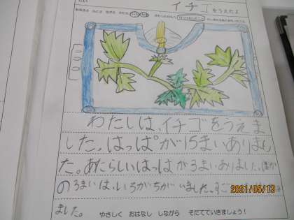 H.Tさんは、野菜の色や葉っぱの数を分かりやすくカードに書いています。