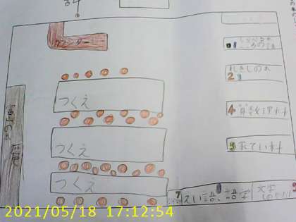先週、図書室のマップを書きました。数字や漢字をたくさんかきました。絵をかくのが大へんでした。色をぬるのはとても楽しかったです。またやりたいです。