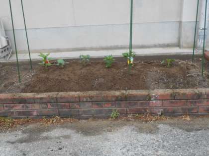 野菜の苗を植えました。生活単元の学習で使いたい野菜を学級で話し合い、ミニトマトやパプリカ、ピーマン等を育てることにしました。