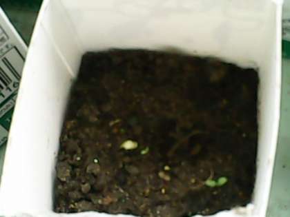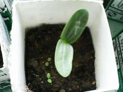 友達のヘチマの様子を見たら、子葉がひらいていました。みんなのヘチマも子葉がひらくといいな〜。
