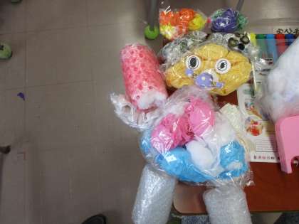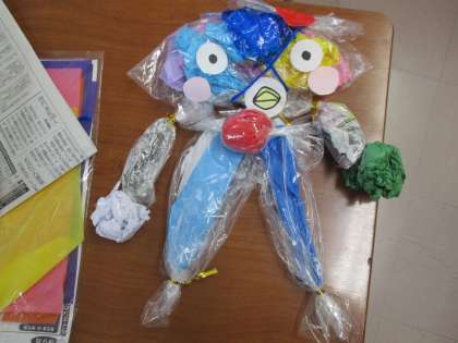 ビニール袋の中に、花紙や色画用紙を丸めて入れ、カラフルフレンドを作りました。