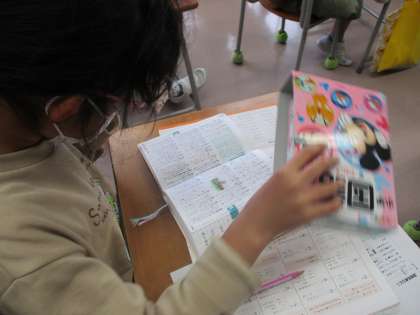 いくつか言葉を調べるうちにだんだん慣れてきた様子で、たくさんの言葉の意味を調べていました。