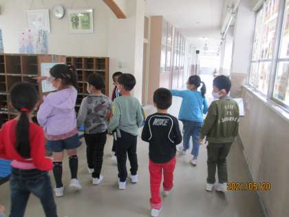 1年生に学校を案内したよ 公開日 2021/05/20 更新日 2021/05/20 2年生 2年生は、これまでの生活科の時間に、1年生に紹介したい場所やそれぞれの場所を回る順番を考えたり、どのように紹介するかをグループごとに話し合ったり、案内のための地図をかいたりしてきました。 今日は、1年生がついてきているか後ろを確認しながら歩いたり、優しく声をかけたりする2年生の姿が見られました。