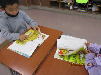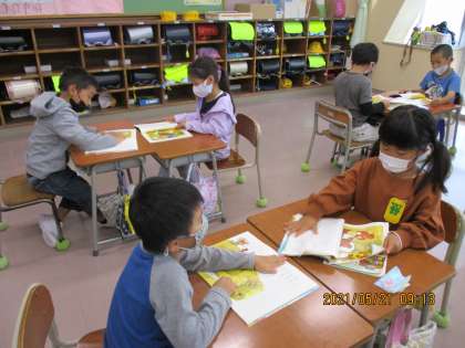 えをみてそうだんしたよ。えをくらべるとたくさんはっけんできて、たのしかったよ。