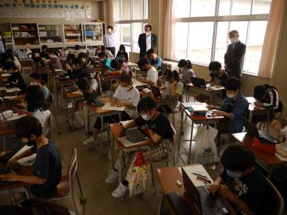 令和3年度第1回学校評議員会が行われました。学校評議員の方々に各学年の学習を参観していただいた後、学校経営方針や学校評価(アクションプラン)等を説明し、これからの取組についてご意見をいただきました。