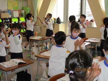 今日は、2拍子の曲に合わせて「たん たん たん たん たん たん たん うん」のリズムを学習しました。