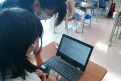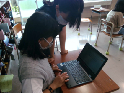 今日は、委員会の活動の様子を伝えます。s・yさん、k・mさんが、委員会活動をしている姿をとりました。みんなが挨拶の仕方について学べるスライドを作っています。みんなが1日のスタートを気持ちよくできるように、私もがんばります。