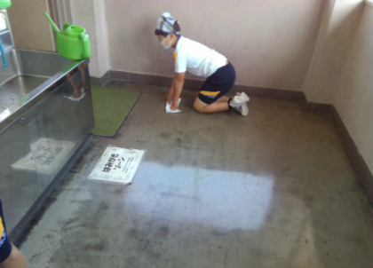 今日は、ファミリー清掃がありました。今日の清掃は、2回目でした。みんな、なれてきて、丁寧にやっていました。6年生は、1年生に、ほうき、雑巾、トイレ掃除の仕方を、一生懸命教えていました。みんなで、学校をきれいにしていきます。