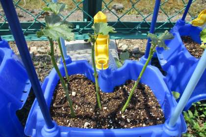 つぎはオクラと土をまるごと入れます。またまたつぎは、オクラを入れたところにまた水をやります。これでオクラのそだてかたをおわります。