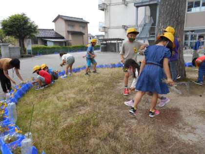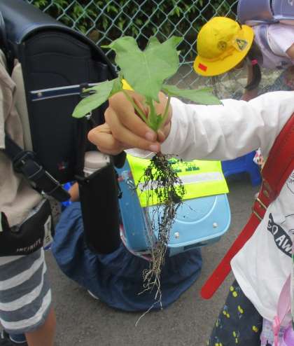 活動が早く終わったので、下校時刻まで花壇の草むしりをしました。子供たちは、進んで雑草を取りながら、国語科の学習を思い出し「ねことねっこ」と言いながら、根っこを見せてくれたり、雑草によって根っこが違うことを発見したりしながら、短時間で花壇をきれいにしました!