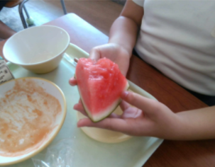 昨日6月10日、給食にスイカがでました。赤かったとこが美味しかったです。美味しかったのでまた食べたいです。