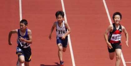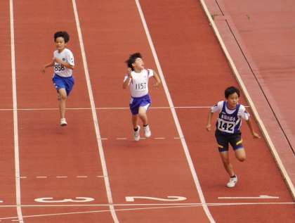 100m走で、5年のO.R君が1位、6年のF.D君が16位に入り、7月に行われる県大会に出場します。