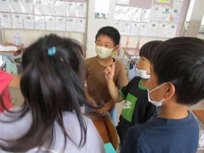 学級のみんなが楽しめるよう、本や図鑑などで調べながらクイズなどを考えています。