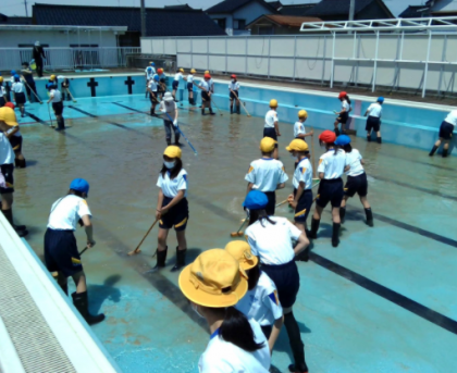 今日は3・4時間目に、5・6年生で二回目のプール掃除をしました。前回は途中で終わったけれど、みんなが最後まで頑張っていました。今日は、みんな「今日で、終わらせる」と思いながら、一生懸命に作業をしていました。先生の話聞くときに、みんなおつかれのようすでした。私はみんなでプール清掃をできて楽しかったです。早く泳ぎたいです。