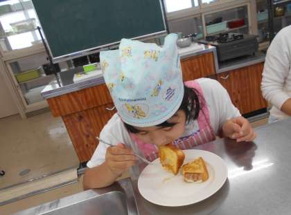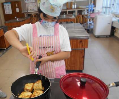 今日は学習参観でした。ひまわり級は生活単元学習「チャレンジ!クッキング」で、フレンチトーストを作りました。