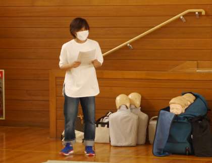 18日(金)、水橋消防署の救急救命士さんと応急手当指導員の方々を講師にむかえ、天瀬育朋会と教職員が合同で、救命救急講習会を開催しました。