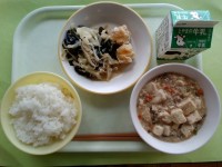 今日の献立は、ご飯、牛乳、魚の野菜あんからめ、華風和え、豆腐スープです。明日から7月、最初の給食は、食パン、牛乳、ポークケチャップ、添え野菜、カブのシチュー、バナナ、メープルジャムです。