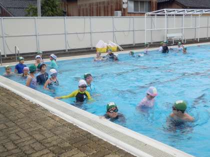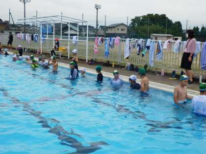 てるてるぼうずの願いが通じたのか、今日は、久しぶりの学校プールに入ることができました。プール開きでは、代表児童が今年度の目標を発表しました。5年生は2年生とプールに入り、2年生を助けながらの学習でした。今日は短い時間でしたが、今度はもっとたくさん入れるといいですね。