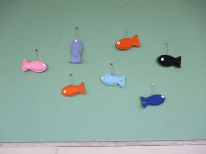 僕たちは、家庭科で魚の形の布に綿を入れて作品を作っています。僕は、最後まで完成させることができて嬉しかったです。難しかったところは、チェーンをつけるところです。頑張ってできました。