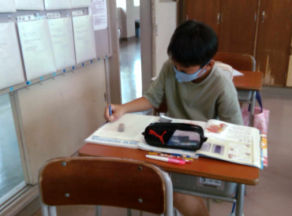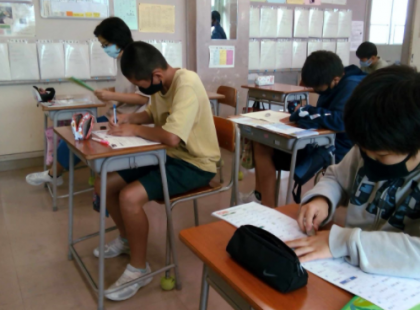 今日は、みんなで、英語のテストをしました。先生が質問して、私達が答えました。スラスラ言えるように沢山練習をしました。一人ずつ呼ばれていく中、教室では、他の期末のテスト勉強をしていました。他の教科でもいい点数が取れるように、沢山勉強をしました。英語のテストでは、クラスのほとんどの人が上手くできたと言っていました。