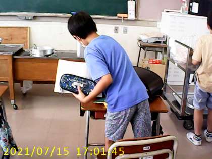 三年生は、きゅうしょくを食べ終わったらかえりのじゅんびをしています。
