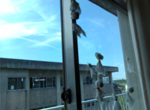 これはみんなが作った「てるてる坊主」です。プールに入りたくても入れない日が続いて、雨の日にみんなで作りました。天気が良くても水温が低くて…でも、最近は毎日晴れて水温もちょうどよくて、プール日和です。これも、「てるてる坊主」のおかげだと思います。プールに入る日は、みんなハッピーです。