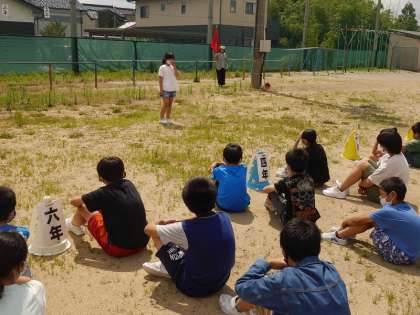4年生児童代表が「おはしも」を守って避難できた振り返りを発表しました。自分の命は自分で守ることを全校で再確認しました。