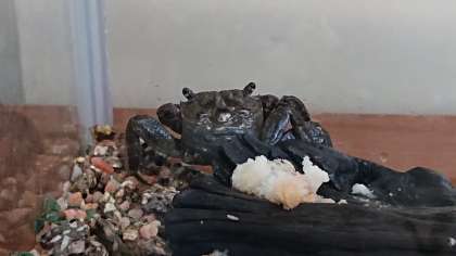 今朝、Kくんの「かに、つかまえたよー!」という声が響きました。やってきた生き物に子供たちは大興奮です。「何という種類のかになのか」「飼育が可能なのか」、それぞれの頭の中には「?」がいっぱいです。一生懸命クロムブックで調べる子供たちでした。