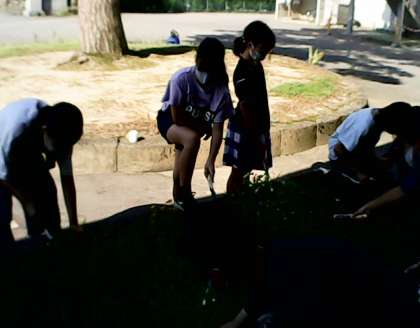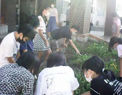 今日は、朝から環境委員会のお手伝いです。一緒に花壇の草むしりや前庭のそうじをしています。委員会を超えて、学校をよりよくしていこうとする活動に参加です。