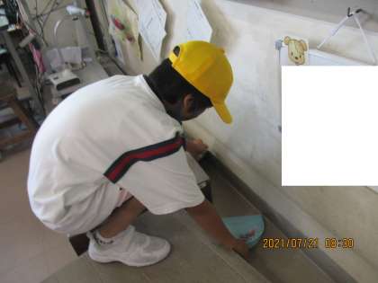 ファミリー清掃では、上級生が下級生に優しく声を掛ける姿をよく見かけます。上級生が下級生を仕事に誘い、一緒に活動しながら掃除の仕方を教えたり、上級生が隅々まできれいにし、下級生のよい手本になったりしています。