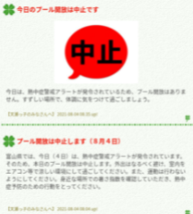 3日(火)と4日(水)、プールが2連続中止になってしまいました。ガーン😫友達のK・Kさんとも一緒に行く約束をしていまいた。プールが中止になってしまったのは悲しいですが、その空いた時間をHP記者や宿題の時間に使いたいです。明日こそプールに入れますように神様〜!!
