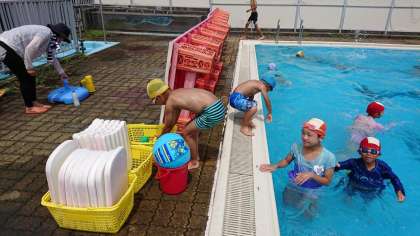 今日は、プール開放最終日。子供たちは元気いっぱい、笑顔いっぱいにプールを楽しんでいました。片付けも手伝ってくれた子供たち。よりよい「泳ぎ納め」になったのではないでしょうか。