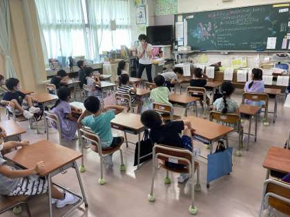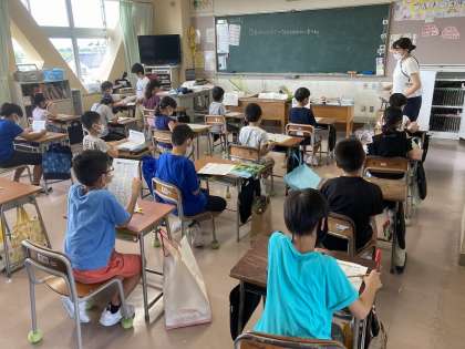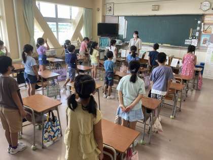 夏休みの静まりかえった教室に、元気な子供たちが戻ってきました。久しぶりに会う子供たちは、日焼けのせいもあり、少したくましく見えます。