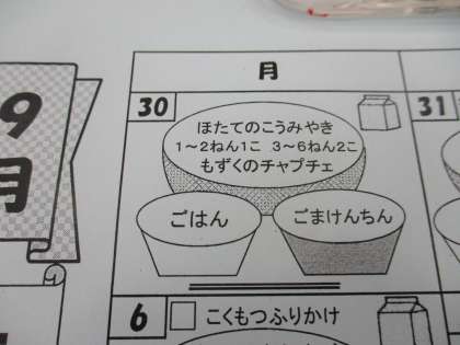 今日は、二学期の初めての給食の日でした。献立には、もずくのチャプチェがありました。ぼくは、初めてもずくのチャプチェを見たとき「おいしいのかな?」と思いました。しかし、食べてみると、給食の中で一番好きというくらい美味しかったです。これからも給食を味わって食べたいです。