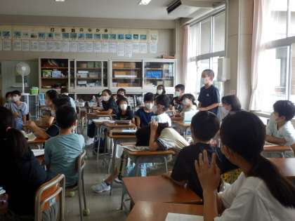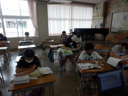 *写真は社会の調べ物や自由研究の発表中の様子です。