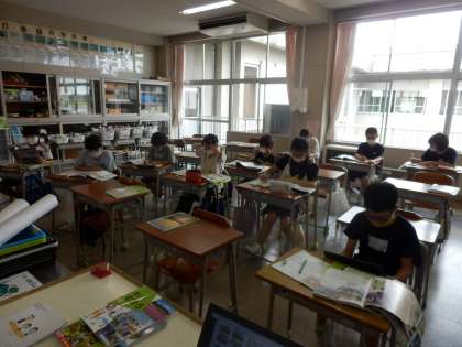 2学期本格的にスタートです。今日は、係を決めたり、ショー&テルの順番を決めたりしました。また、社会や算数の学習もスタートしました。午後からは自由研究の紹介もしました。