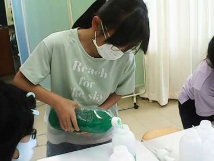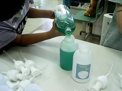 今日は、2学期1回目の委員会活動で、泡の石けんボトルを新しくしました!ボトルに貼ってあるラベルは、1学期に「感染症対策バッチリで賞」に選ばれた人のデザインです。今のところ3種類あります。明日、登校したら確認して、石けんを使った手洗いをしてください。