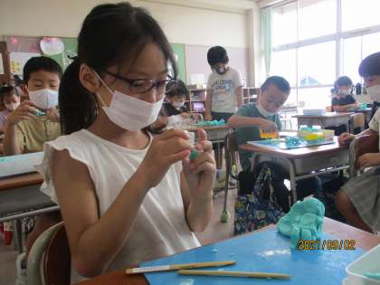 お友達は、お姉ちゃんがピアノをがんばっているところを粘土であらわしていました。もうすぐコンクールがあるみたいなのでがんばってほしいです。
