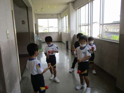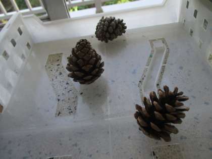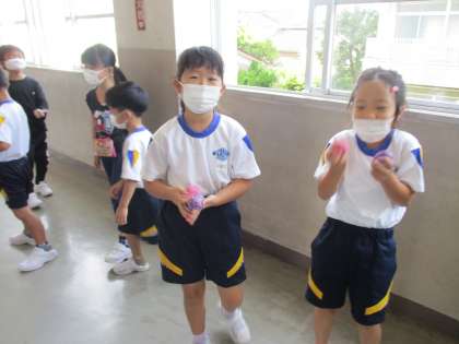 昨日「まつぼっくり」の絵本を読み聞かせしました。水にぬれたものとかわいたもののちがいを知った子供たちは、早速まつぼっくりを拾ってきました。昨日の帰りには小さかったまつぼっくりが、登校すると少し大きくなっていました。「やっぱり、大きくなるんだ!」と、つぶやいていました。月曜日も楽しみです。
