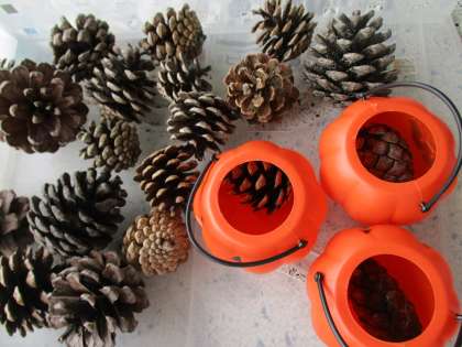 週末の間にまつぼっくりが全部大きくなっていると思っていたのに、容器の中のまつぼっくりは、大きくなっていませんでした。みんなでなぜだろう?と、予想を話し合いました。「お日様が当たりにくいからかな?」「風が来ないからかな?」など、置かれている状況の違いをもとに考えました。明日は、どうなっているでしょうか?