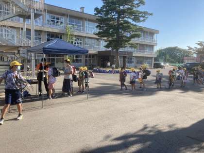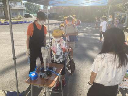 朝の登校の様子 公開日 2021/09/21 更新日 2021/09/21 お知らせ 新型コロナウイルス感染症拡大防止の取組の一つに、登校時、児童玄関前での検温を行っています。今朝から、顔認識サーモグラフィカメラでの検温を行いました。先週は、教員3名で手分けしながらの検温でしたが、自動検温器のおかげで、密を避けながら登校することができました。天瀬っ子のみんなも、きちんと列を守って並んでいました。