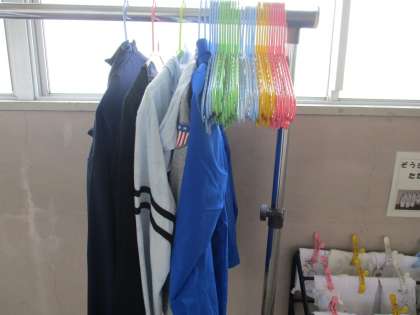 最近、カーディガン等のはおりものを持ってくる人が増えてきました。学校には、寒い時用に持ってきたカーディガンをかけるハンガーがあります。まだまだ暑い日もあるけれど、秋を楽しみたいなと思います。