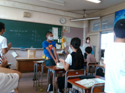 今日の3時間目に外国語をしました。陸の動物と海の生き物の名前を覚えました。歌などで覚えたあと、色グループに分かれて、覚えた動物の名前でかるたをしました。2回しました。すごく白熱して同率優勝のグループも出たほどでした。他にも動物の名前を使って好きな動物の名前を言い合うゲームをしました。