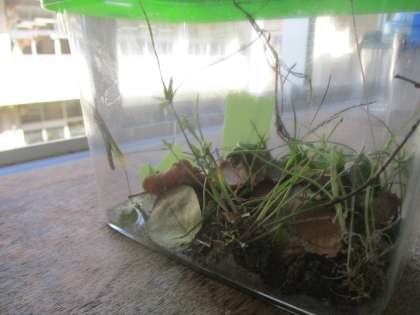 生活科の学習で、今週1週間お世話をします。なかよくなれるように本で調べたり、すみかを作ったりしました。