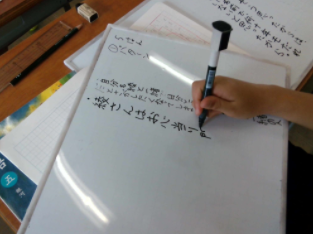 今日の国語は、「たずねびと」というお話を読んで班で話し合いをしました。そして主人公の気持ちや自分だったらと考えてホワイトボードに書きこみをしました。みんな班で話し合っていて良かったです。