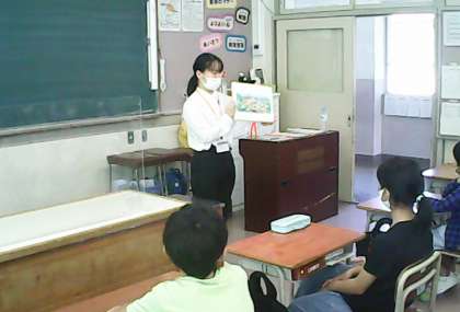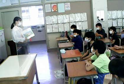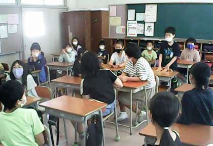 今日から教育実習生が4年生教室にやってきました。教育実習生と言えども、子供たちにとっては「先生」です。新しい先生を前に、やや緊張気味の子供たち。先生は、手書きの絵を提示しながら自己紹介をしてくれました。先生の言葉を聞きながら、子供たちの緊張がほぐれていきます。次は、子供たちが自己紹介です。笑顔いっぱいの時間になりました。