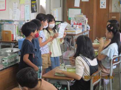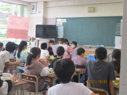 慣れない高学年教室には緊張して入りながら、大きな声でお知らせをしていました。